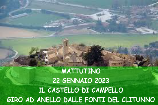 Il percorso che proponiamo attraversa bellissimi e ben curati uliveti con caratteristi muretti a secco. Incantevole il panorama sulla sottostante pianura e sui Monti Martani in lontananza. Il Castello di Campello fondato nel X° secolo è il più antico insediamento abitativo nel territorio. Sorge sulla sommità di un colle ricoperto da uliveti ad una quota di 514 m. s.l.m.