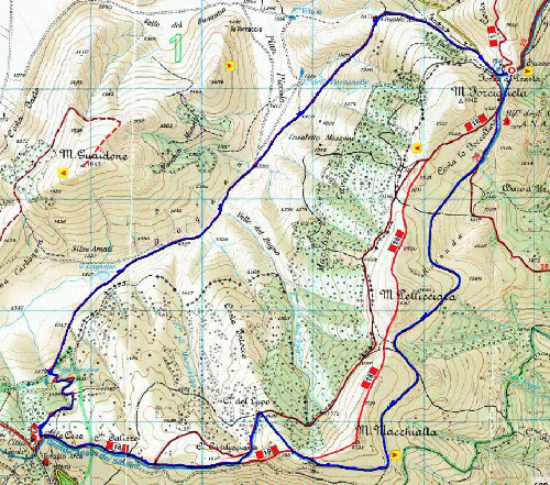 Rifornimenti idrici: da procurarsi prima di partire. Eventualmente al Rifugio degli Alpini e, se presente, alla F.te del Vescovo