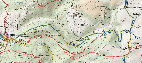 Dalla frazione di Capodacqua, dopo la Torre dei Trinci situata nelle immediate vicinanze dell’abitato, il giro ad anello proposto ci permetterà di raggiungere i resti del Castello di Calestro, poi, in successione, si raggiungeranno i piccolissimi borghi di Rio e Afrile