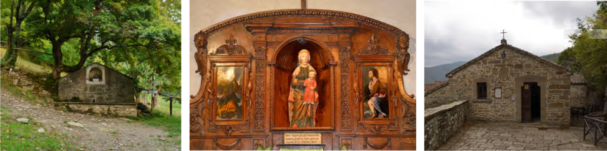 Si giunge al Poggio della Rocca 1000 slm, da qui inizia la discesa con bei panorami sulla vallata di Sansepolcro. Man mano che il sentiero scende il percorso diventa più ripido fino ad arrivare ad un bivio che ci porterà all’Eremo di Montecasale. Importante luogo di spiritualità, fu uno dei posti prediletti da San Francesco che amava l’orrida bellezza delle caverne nascoste tra i boschi di lecci e querce.