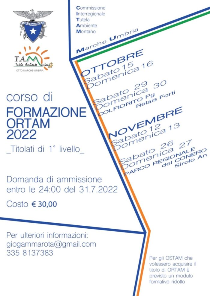 La Commisione Interregionale Tutela Ambiente Montano, ai sensi delle vigenti linee guida per il percorso formativo degli Operatori TAM, organizza il Corso di Formazione Titolati di 1° livello ( ORTAM).